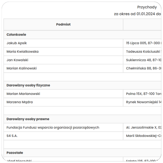 Sprawdzaj na bieżąco wysokość przychodów od darczyńców, członków, klientów – wszystko znajdziesz w przejrzystym zestawieniu